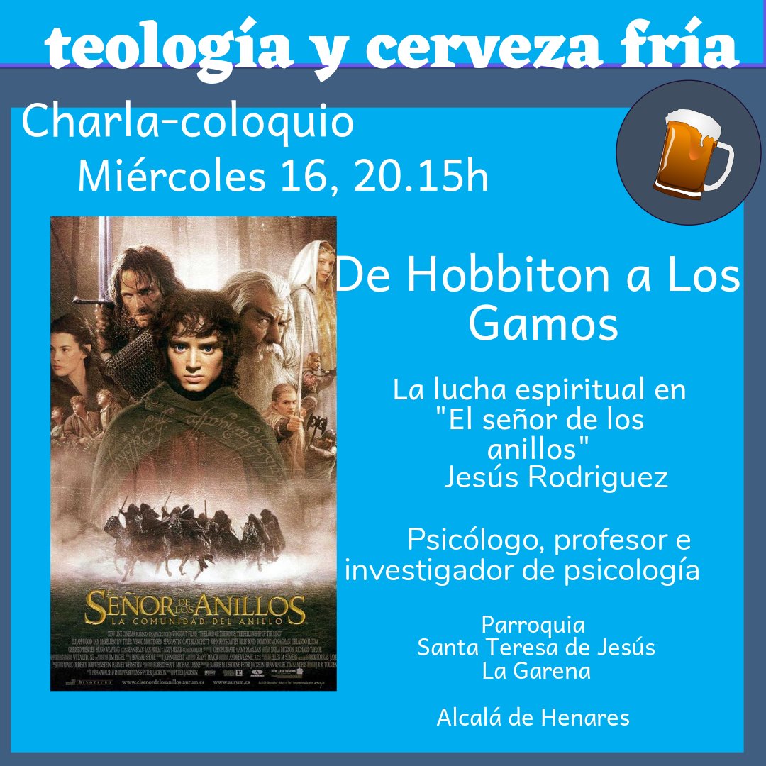 16/11/2022: Teología y cerveza fría Posted on 8 noviembre, 2022 por iglesiagarena LA LUCHA ESPIRITUAL DEL SEÑOR DE LOS ANILLOS Compártelo: Compartir en X (Se abre en una ventana nueva) X Compartir en Facebook (Se abre en una ventana nueva) Facebook Me gusta Cargando... Relacionado