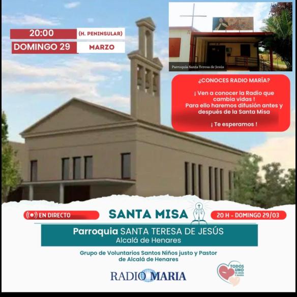 Radio María : Misa desde Santa Teresa La Garena Imagen Posted on 23 marzo, 2026 por iglesiagarena Compártelo: Compartir en X (Se abre en una ventana nueva) X Comparte en Facebook (Se abre en una ventana nueva) Facebook Me gusta Cargando... Relacionado