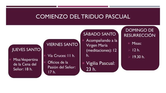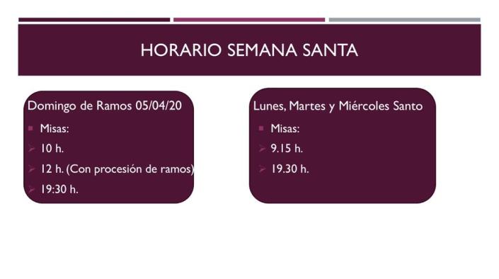 Con motivo de la situación actual de la pandemia, y para evitar aglomeraciones en el templo y en las entradas y salidas, se van a amplicar los horarios de misas de los Domingos para contar con 3 misas de mañana (10.00h, 11.15h y 12.30h). De esta forma, esperamos evitar los agobios que se producen en misa de 12.