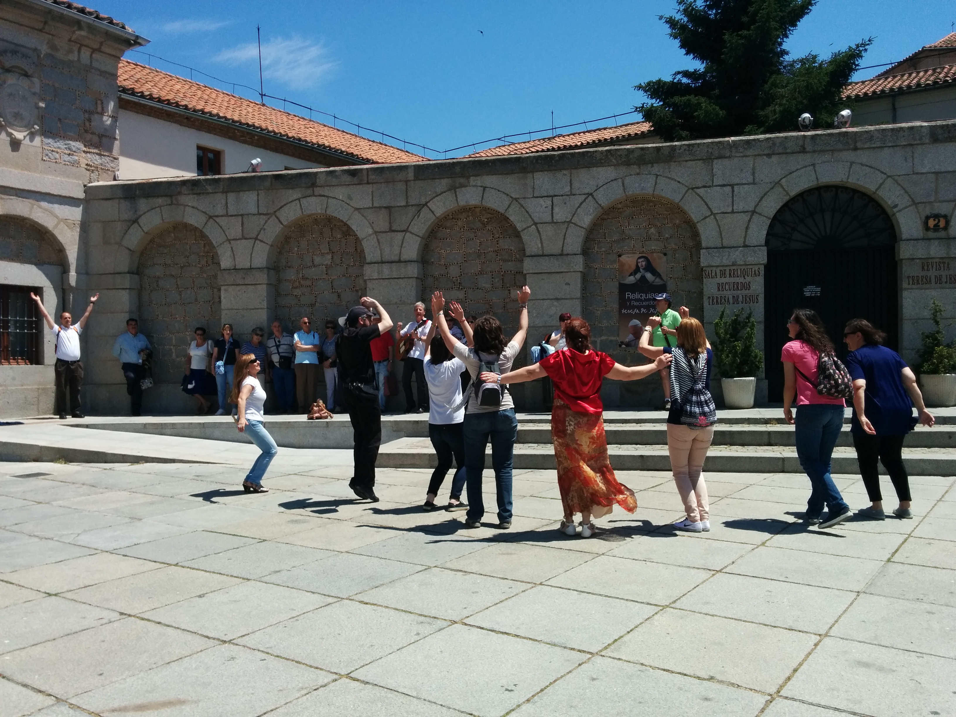 De ahi nos fuimos hacía la Iglesia de Santa Teresa, construida al lado de su casa natal. Nuestro grupo puso el colorido a la plaza con sus canciones y bailes mientras esperábamos para entrar a hacer la visita y celebrar nuestra Eucaristía.