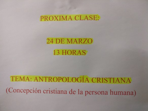Este domingo continuaremos con Antrolopología Cristiana