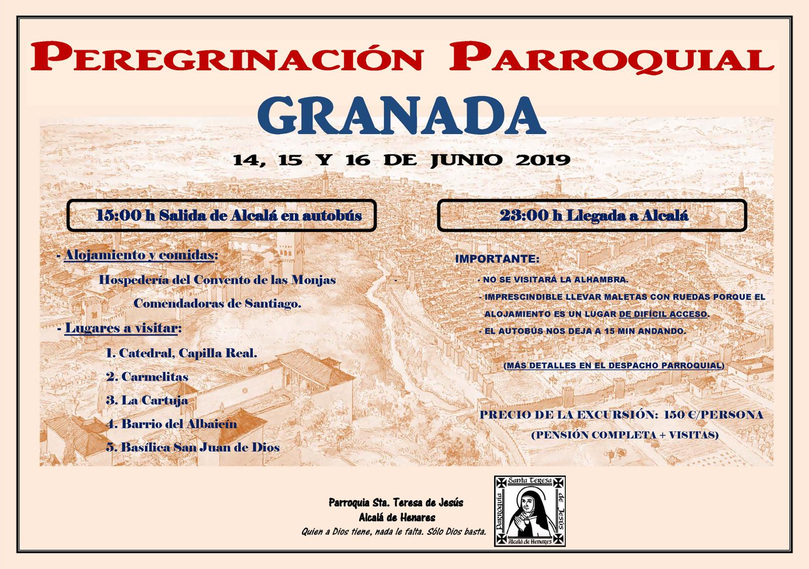 Mucho ya sabéis que este año el viaje parroquial de Junio va ser a Granada los días 14, 15 y 16. Allí nos acompañará el Padre Daniel, que está muy ilusionado con nuestra visita ya demás nos ha ayudado muchísimo con la organización.