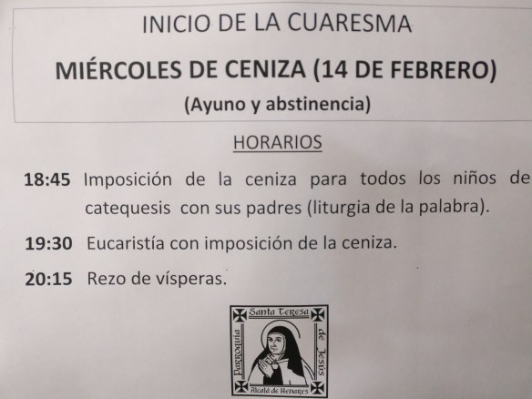 Este miércoles 14 de Febrero comienza la Cuaresma con la imposición de la ceniza. Recordad que es día de ayuno y abstinencia y la Iglesia recomienda sólo una comida fuerte al día.
