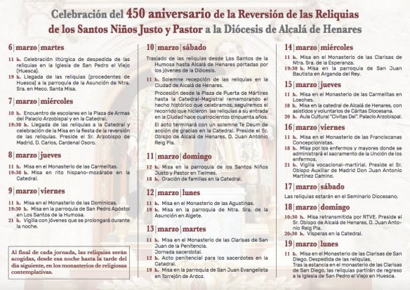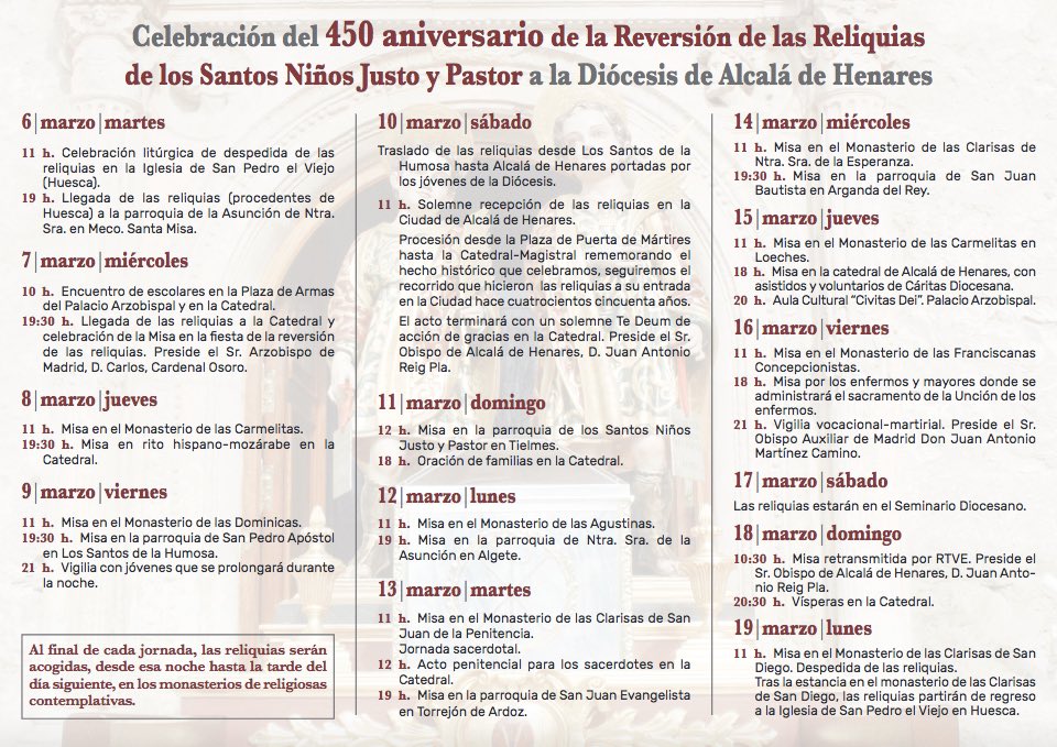 Esta semana vamos a tener un acontecimiento muy especial e importante para nuestra diócesis: la celebración del 450 aniversario del regreso de las reliquias de los Santos Niños a Alcalá de Henares (1568).