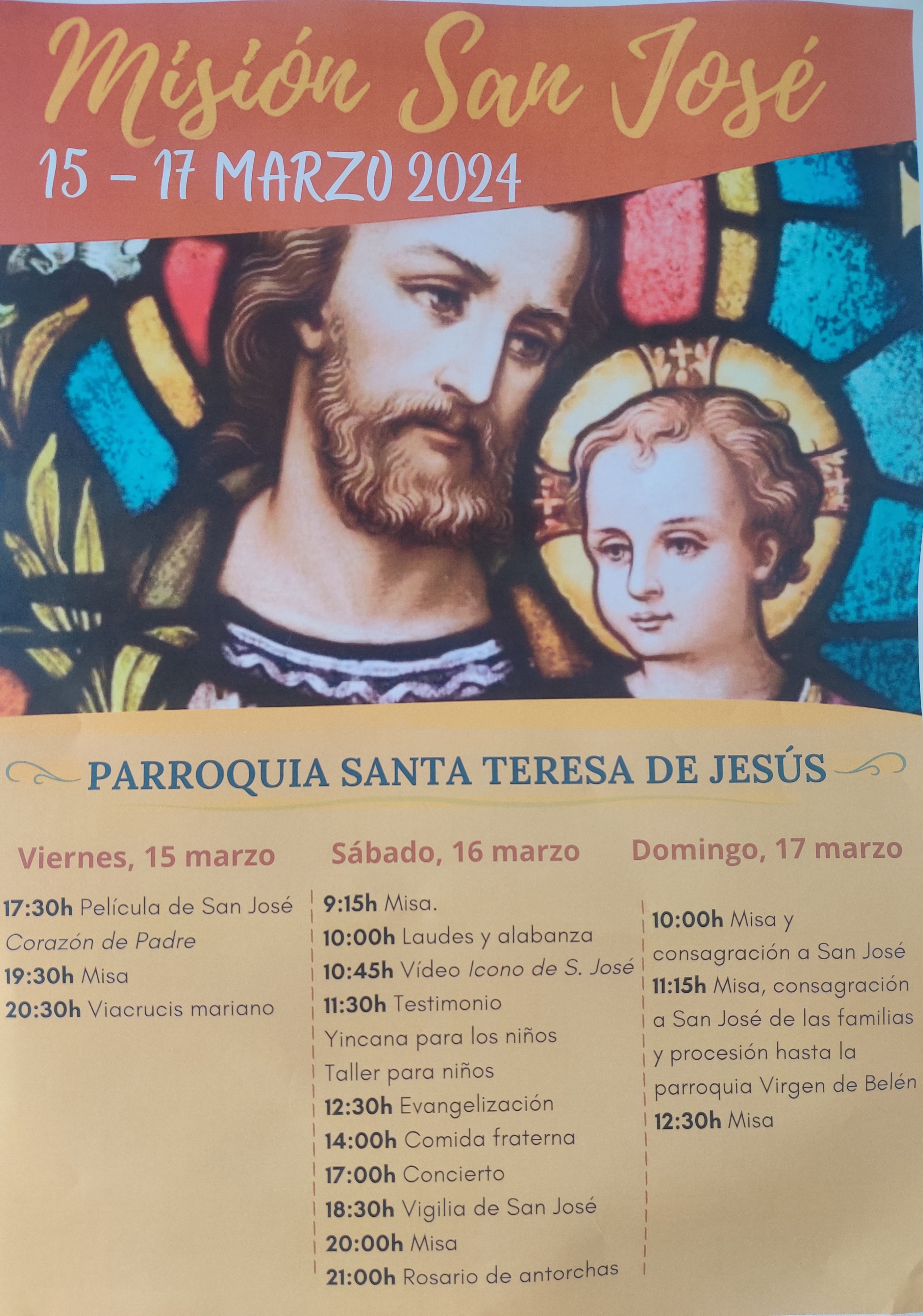 Este martes 19 de Marzo es fiesta de precepto aunque sea día laborable. Para facilitar la asistencia a la misa de San José, habrá un pequeño cambio con respecto a los días laborables normales, quedando como sigue: