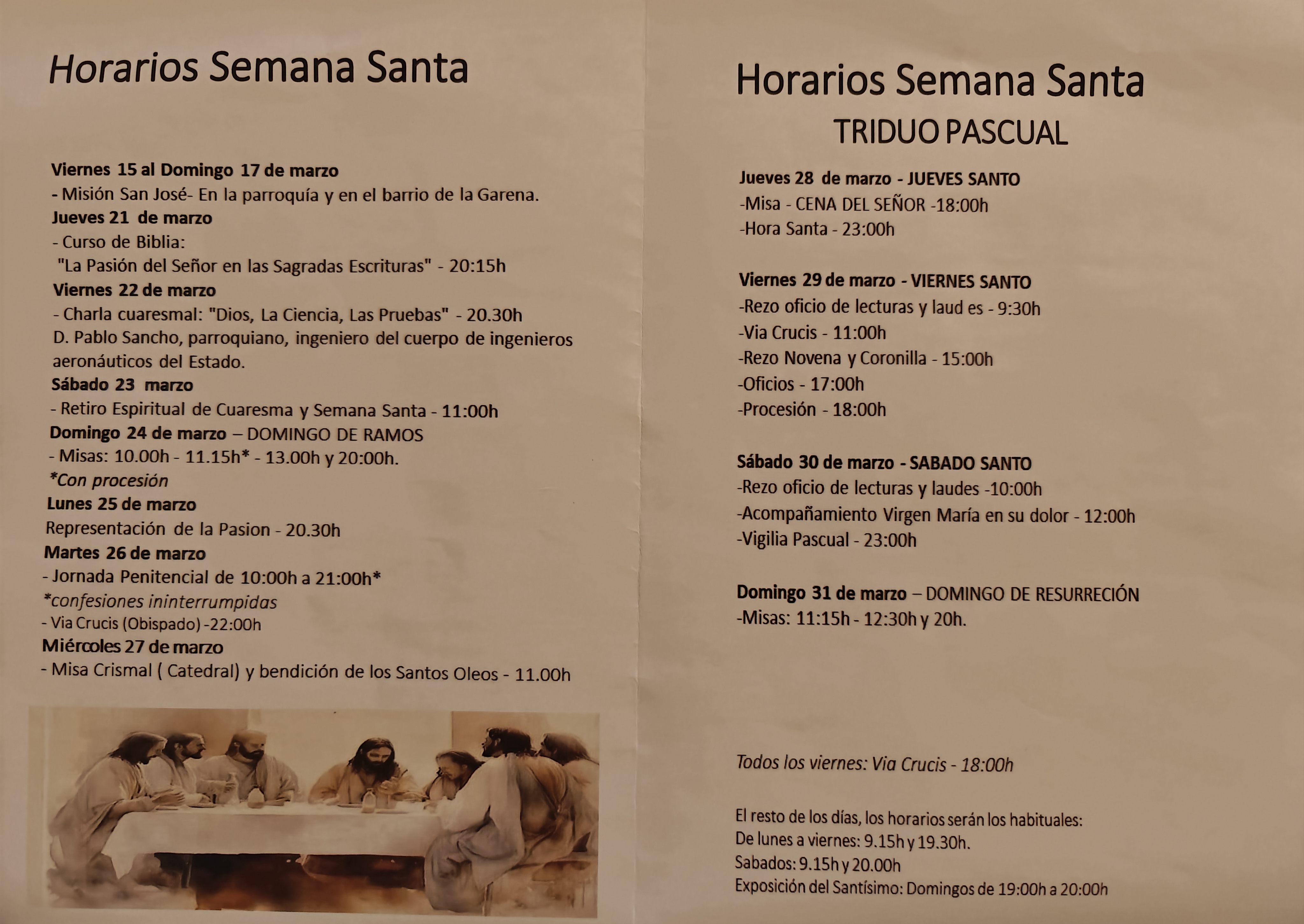 - Misa tarde: 20.00h (cambia con respecto a cualquier día laborable)