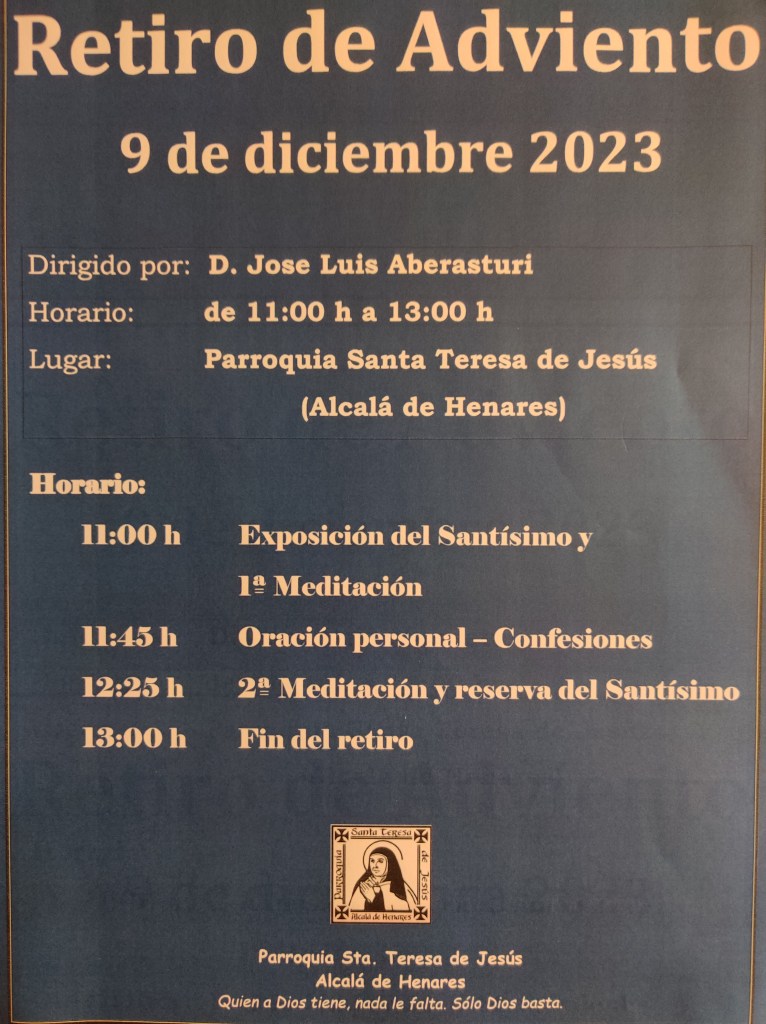 · 7 de Diciembre. Vigilia de la Inmaculada: 21.00h. Rosario meditado presidido por nuestro obispo Don Antonio Prieto.