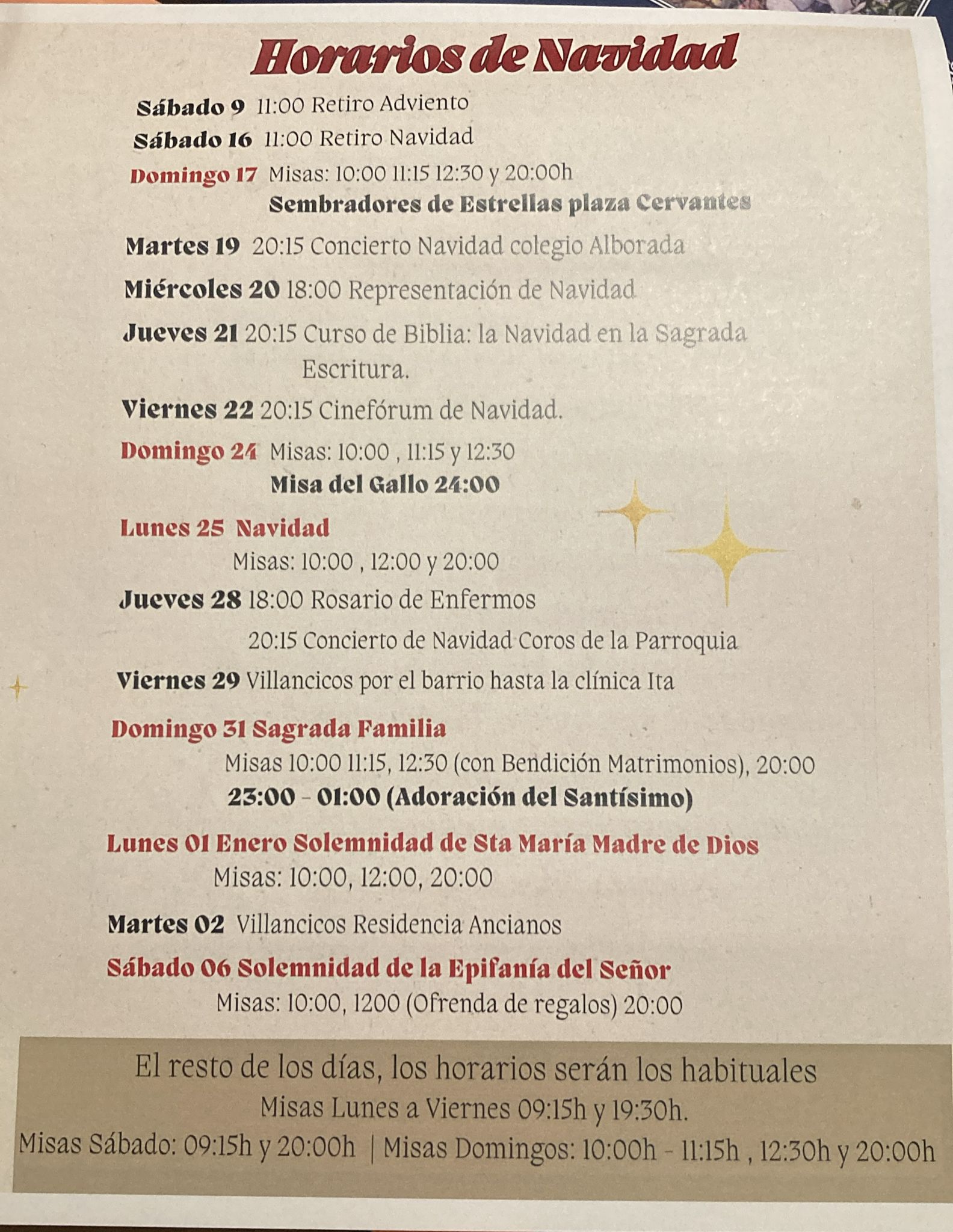 · 8 de Diciembre. Misas de la Solemnidad: 10.00h, 12.00h, 20.00h