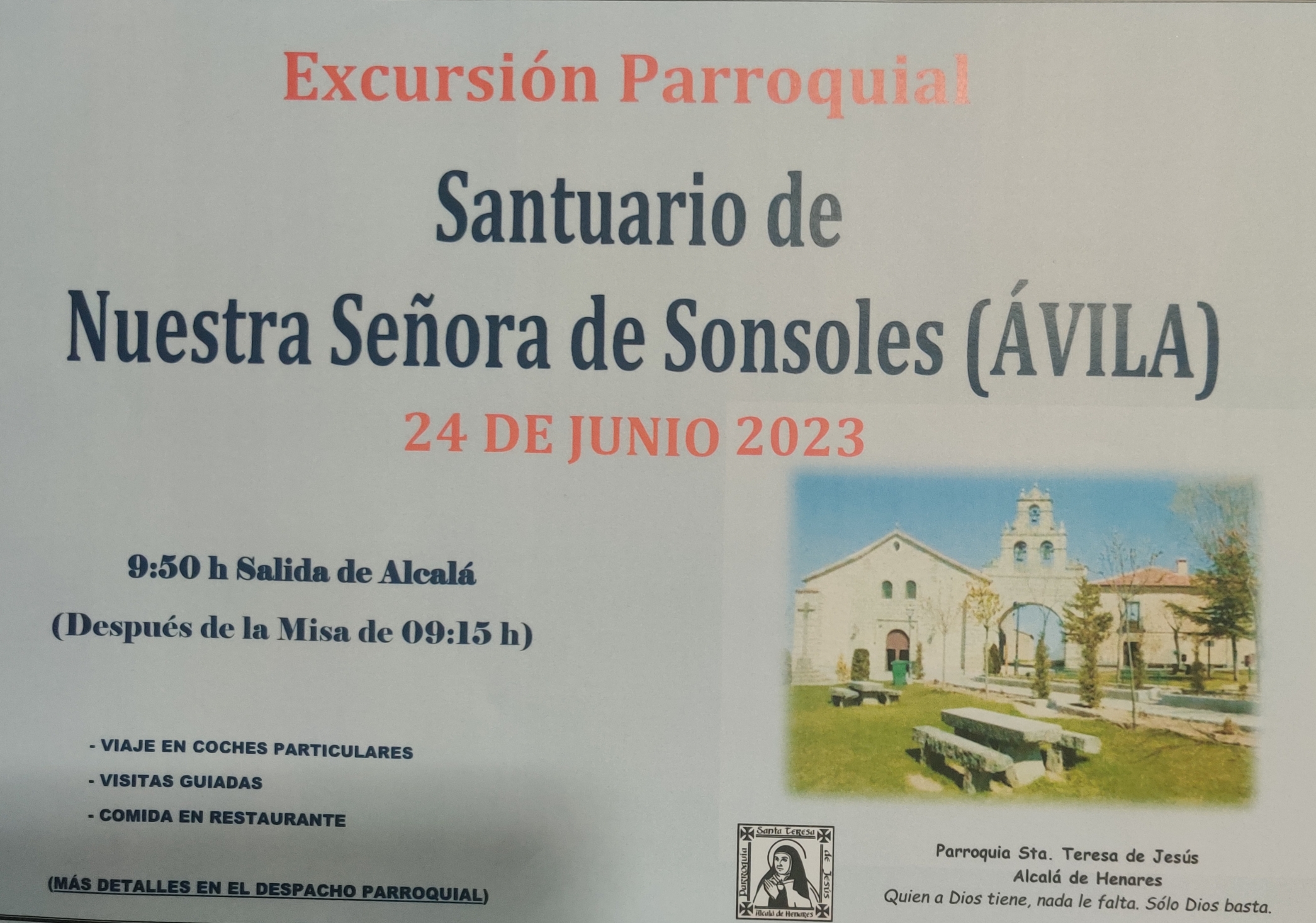Después de estos años sin excursiones por la pandemia, este próximo sábado 24 de Junio vamos a realizar una excursión parroquial al Santuario de Sonsoles.