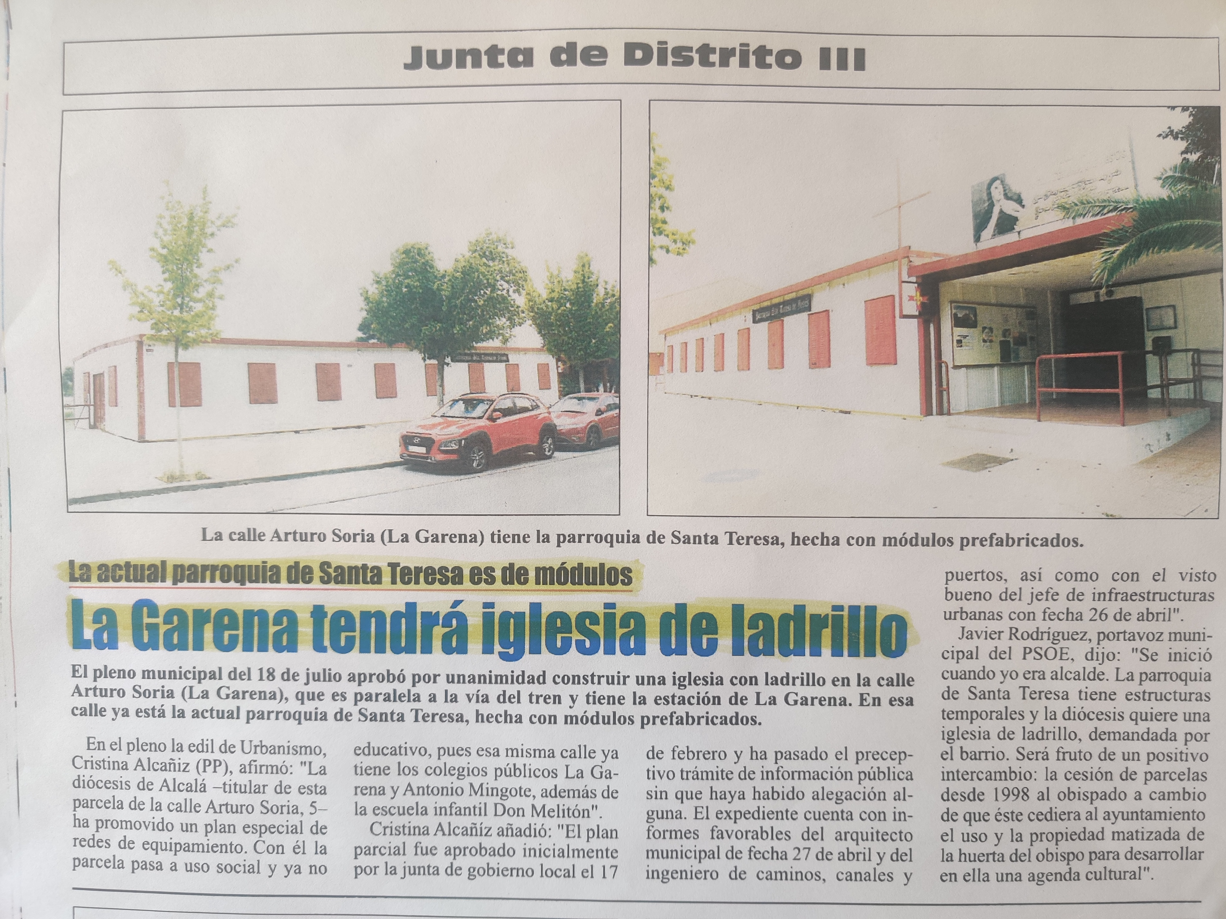 Y es una noticia que nos hace muchísima ilusión, ya que en ella se hace referencia a la construcción de nuestro nuevo templo, cuyas gestiones avanzan a buen ritmo en este segundo semestre que comienza.